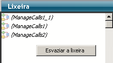 A página Lixeira do Explorador reúne todos os objetos do tipo Pasta, Tabela, Formulário ou Método projeto apagados do banco.