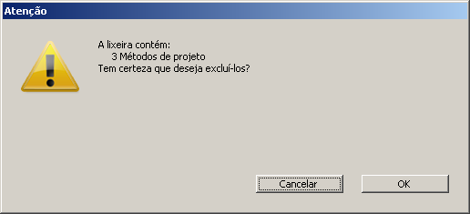 Uma caixa de diálogo de alerta indica o número de objetos presentes na Lixeira e permite confirmar ou cancelar a operação: