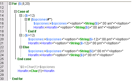El código 4D es indentado automáticamente con el fin de mostrar su estructura: