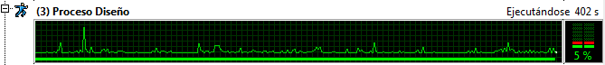 la representación gráfica del estado y del tiempo CPU destinado a un proceso. Para cada proceso usted puede ocultar o mostrar su gráfico haciendo clic en el icono ubicado a la izquierda del nombre del proceso. También puede ocultar o mostar todos los gráficos con la ayuda del atajo Alt+clic (Windows) u Opción+clic (Mac OS) en este icono.