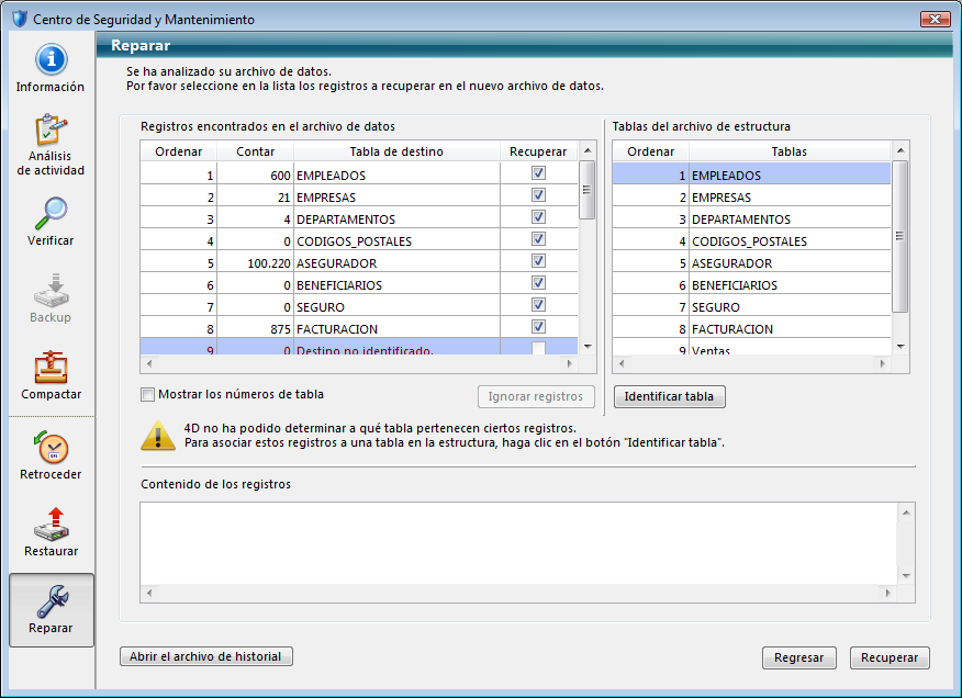 - Si ha deseleccionado la opción Registros borrados definitivamente en las propiedades de una tabla en la estructura de la base, realizar una recuperación por encabezados puede hacer que los registros eliminados previamente reaparezcan.