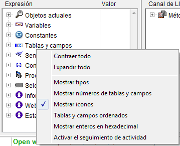 • Expandir todo: expande todos los niveles de la lista jerárquica de las expresiones.