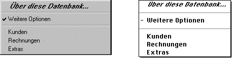 Im Folgenden sehen Sie links das PopUp-Menü unter Windows, rechts das PopUp-Menü auf Macintosh. Beachten Sie unter Windows die Standardmarke vor der Zeile.