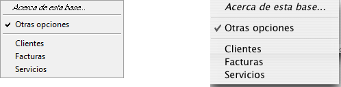 El siguiente es el menú pop-up tal como aparece en Windows (izquierda) y Macintosh (derecha). Note la marca de selección estándar para la versión Windows.