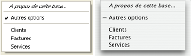 Voici le pop up menu tel qu'il s'affiche sous Windows (à gauche) et sous Mac OS (à droite). Notez la coche standard de la version Windows :