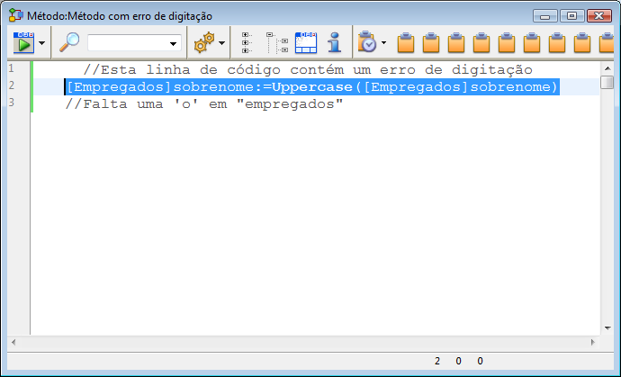 Nota: Os comentários foram inseridos manualmente para o propósito deste manual. Só a cor é alterada por 4D no local do erro.