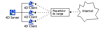 • Repartición de la carga con clientes 4D: como todo equipo 4D corriendo remotamente puede ser utilizado como servidor web, puede definir un sistema de servidor web dinámico con repartidor de carga. Esto ofrece muchas posibilidades de desarrollo, más particularmente: