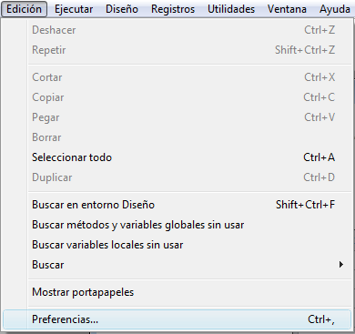 Esta opción de menú está disponible incluso cuando ninguna base está abierta.