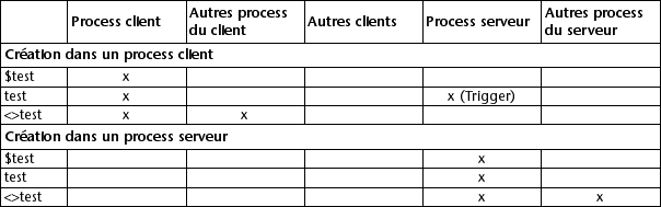 Les sélections temporaires peuvent avoir une portée (une aire d'action) locale, process ou interprocess.