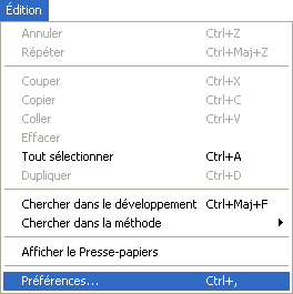 L’accès à la boîte de dialogue des Préférences s’effectue via la commande Préférences... du menu Edition (Windows) ou du menu Application (Mac OS) de 4D :