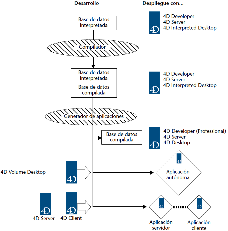 Las posibilidades de despliegue de las bases de datos 4D se resumen en el siguiente diagrama: