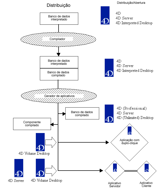 As possibilidades de distribuição do banco de dados 4D são resumidas no diagrama a seguir: