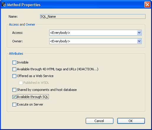 Uma propriedade de segurança foi adicionada para os métodos projeto 4D: Disponível via SQL: