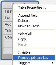 4D lhe permite criar e excluir diretamente chaves primárias via o menu contextual do editor da estrutura.