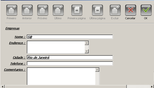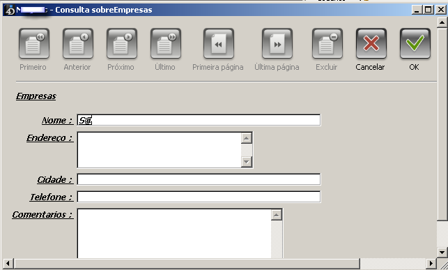A seguinte imagem mostra uma janela Buscar por formulário utilizada para buscar todas as empresas cujo nome começa por “S”.