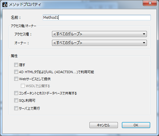 4D Serverでは変更はサーバーに反映されます。複数のユーザーが同時に名称を変更しようとすると、最後に行われた変更の名称が適用されます。メソッドのオーナーを指定すれば特定のユーザーしかメソッド名を変更できないようにできます。