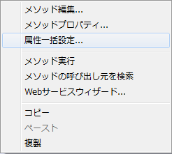 属性を使用して、プロジェクトメソッドがどの版で利用可能かを設定できます。エクスプローラーを使用して複数のメソッドに対し属性をいかっつして設定することもできます (後述)。