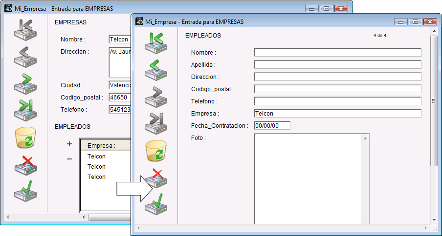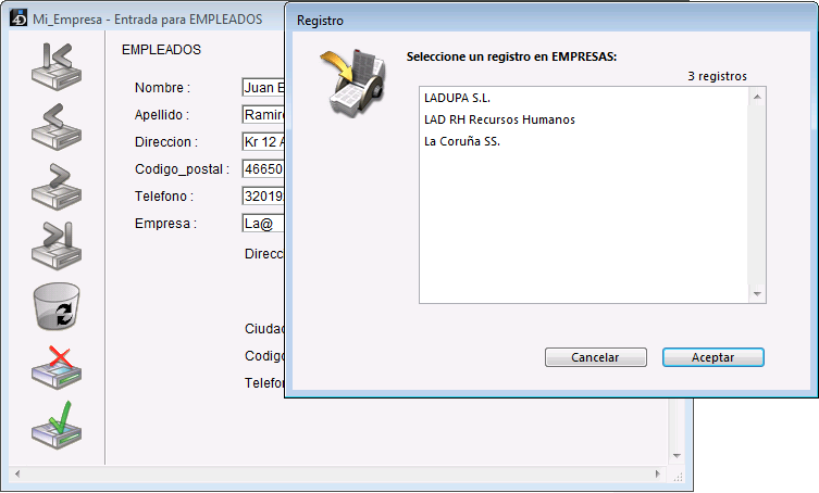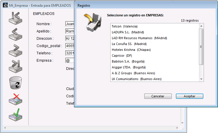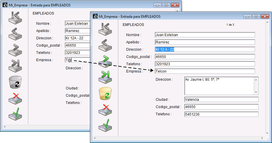 bien sea manualmente, si se muestra el campo llave: en el ejemplo anterior, fue suficiente introducir "Telcon" en el campo empresa de cada subregistro,