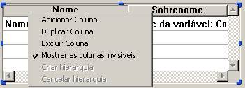 No ambiente Desenho, é possível mostrar ou ocultar as colunas invisíveis utilizando o menu contextual associado ao list box. (clique em uma coluna ou em um título de coluna):