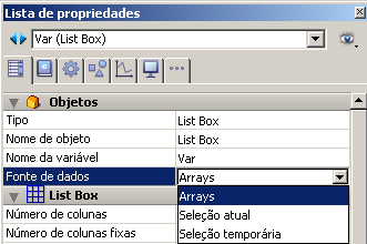 Este tema inclui a propriedade Fonte de dados que é utilizada para especificar o tipo de list box: