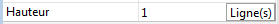Il est possible de définir la hauteur des en-têtes, pieds et lignes en unités de pixels ou de lignes de texte. Dans la liste des propriétés, le choix de l’unité est effectué via le bouton associé au champ "Hauteur".