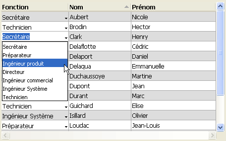 Note : En cas de redimensionnement du formulaire, si la propriété de redimensionnement horizontal Agrandir a été affectée à la list box, la colonne la plus à droite sera étirée au-delà de la largeur maximale si nécessaire.