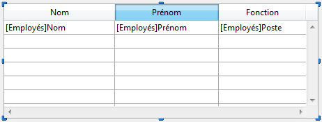 Lorsque les en-têtes sont affichés, vous pouvez sélectionner un en-tête de list box dans l’éditeur de formulaires en cliquant dessus lorsque l’objet List box est sélectionné :