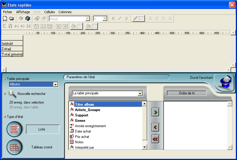 Cet éditeur permet à l'utilisateur de construire en totalité son propre état. Pour plus d'informations sur la création d'états à l'aide de l'Editeur d'états rapides, reportez-vous au manuel Mode Développement de 4D.