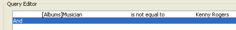 Conjunction buttons: This area contains three buttons that correspond to conjunction operators you can use to join the current simple query to the previous simple query.