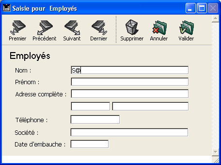 L’écran ci-dessous représente une recherche par formulaire destinée à trouver tous les employés dont le nom de famille commence par “S”.