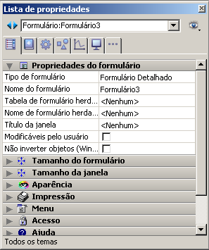 Para renomear um formulário utilizando a Lista de propriedades do editor de formulários (ver Lista de propriedades):