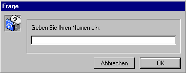 $vsPrompt :=Request("Geben Sie Ihren Namen ein:")zeigt folgendes Dialogfenster auf dem Bildschirm: