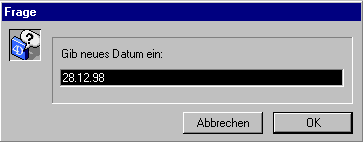 $vdPrompt:=Date(Request("Gib neues Datum ein:";String(Current date)))zeigt folgendes Dialogfenster auf dem Bildschirm: