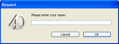 $vsPrompt:=Request("Por favor introduza seu nome:")Mostrará a seguinte caixa de diálogo (em Windows):