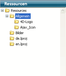 Die Liste zeigt die Hierarchie der Ordner im Ordner Resources der Datenbank.