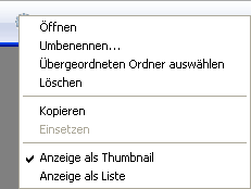 Sie können in der Ordnerliste auch das Kontextmenü aufrufen. Es enthält dieselben Befehle wie das DropDown-Menü.