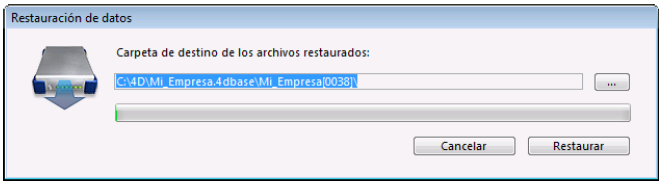 Por defecto, 4D restaura los archivos en una carpeta llamada “Nombrearchivo” (sin extensión) ubicada junto al archivo. Puede hacer clic en el botón [...] para especificar una ubicación diferente.