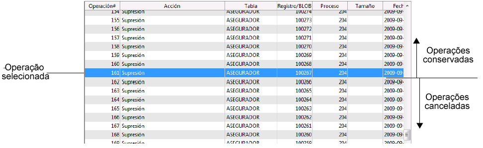 Selecione a linha depois da qual se deve cancelar todas as operações. A operação da linha selecionada será a última que se conservará. Se por exemplo, quiser cancelar uma eliminação, selecione a operação localizada justo antes da eliminação. Se cancelará a operação de eliminação assim como todas as operações seguintes.