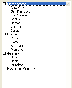SET LIST PROPERTIES(hlCities;Ala Windows;20000)sieht die hierarchische Liste folgendermaßen aus: