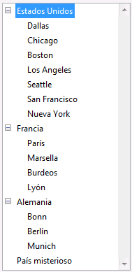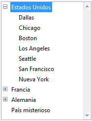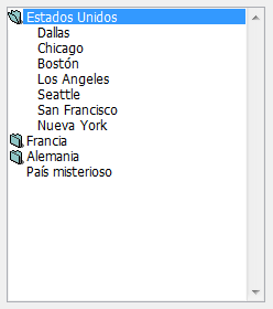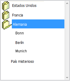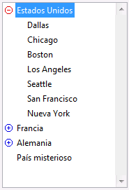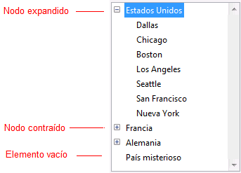 En la apariencia Windows, el icono (+) denota los nodos contraídos, y el icono (–) los nodos desplegados. Los nodos sin elementos hijos no tienen icono. Esta es una lista jerárquica por defecto con apariencia Windows: