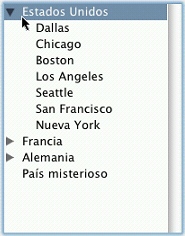 SET LIST PROPERTIES(hlCiudades;Ala Macintosh;20010)La lista jerárquica se verá así: