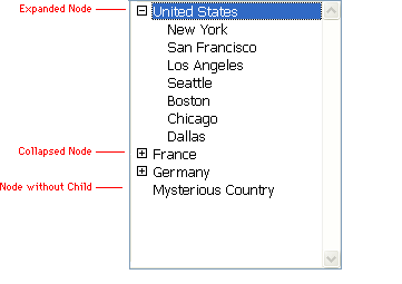 Na aparência Windows, o ícone (+) denota os nós contraídos, e o ícone (–) os nós expandidos. Os knots sem elementos filhos não tem ícone. Esta é uma lista hierárquica padrão com aparência Windows: