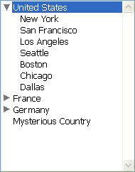 Na aparência Macintosh, um ícone de flecha a direita indica os nós contraídos e uma flecha descendente indica os knots expandidos. Os nós sem elementos filhos não têm ícone. Esta é uma lista hierárquica padrão com aparência Macintosh:
