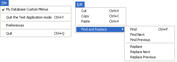 SET MENU BAR(2;*)In this comprehensive example, we will create, by programming, a menu bar including the following File and Edit menus: