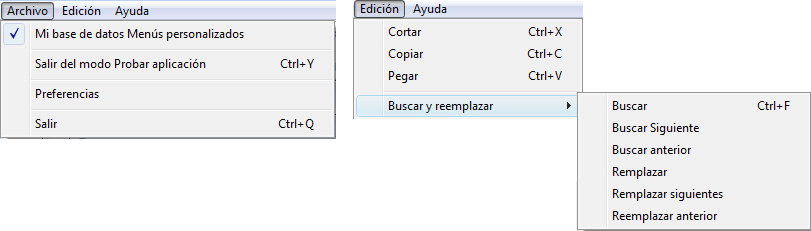 `Método de creación del menú Buscar y reemplazar
