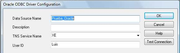 El código a continuación se conecta a una fuente de datos externos (Oracle) utilizando los siguientes parámetros: