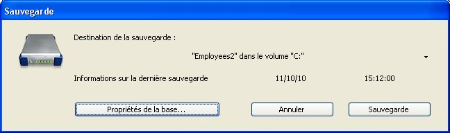 Le bouton Propriétés de la base... provoque l’affichage de la boîte de dialogue des Propriétés de la base (page Page Sauvegarde/Périodicité).