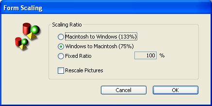 "フォームスケール"ダイアログボックスを使用してフォームオブジェクトの倍率を変更し、データベースが他のプラットフォームで使用されたときの見栄えを良くすることができます。