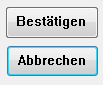 Die Bezeichnung wird in der Eigenschaftenliste unter der Gruppe „Objekte“ definiert. Sie können diese jederzeit ändern. - Standardschaltflächen: Eine Standardschaltfläche sieht wie eine gängige Schaltfläche aus, lediglich ihr Rand ist dicker. Dies zeigt dem Benutzer, dass die Schaltfläche die empfohlene Wahl ist. Nachfolgende Darstellung vergleicht eine Schaltfläche mit einer Standardschaltfläche.