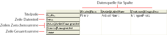 Datenquellen für Spalten: Das sind die Bezeichnungen der aktuellen Referenzen auf die Datenquelle. Modus Kreuztabelle: